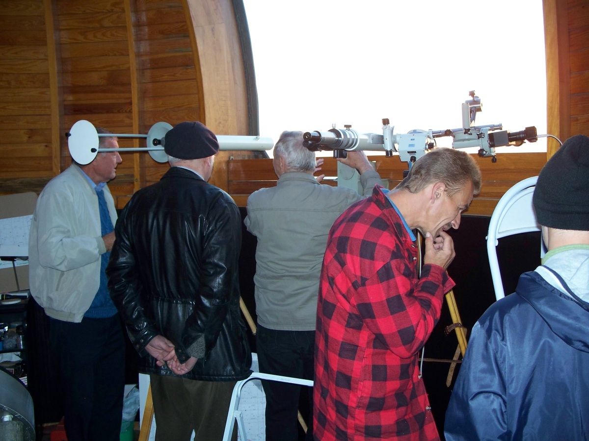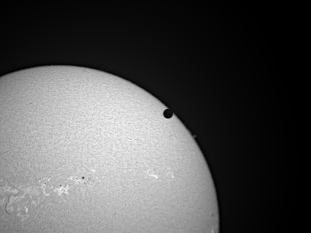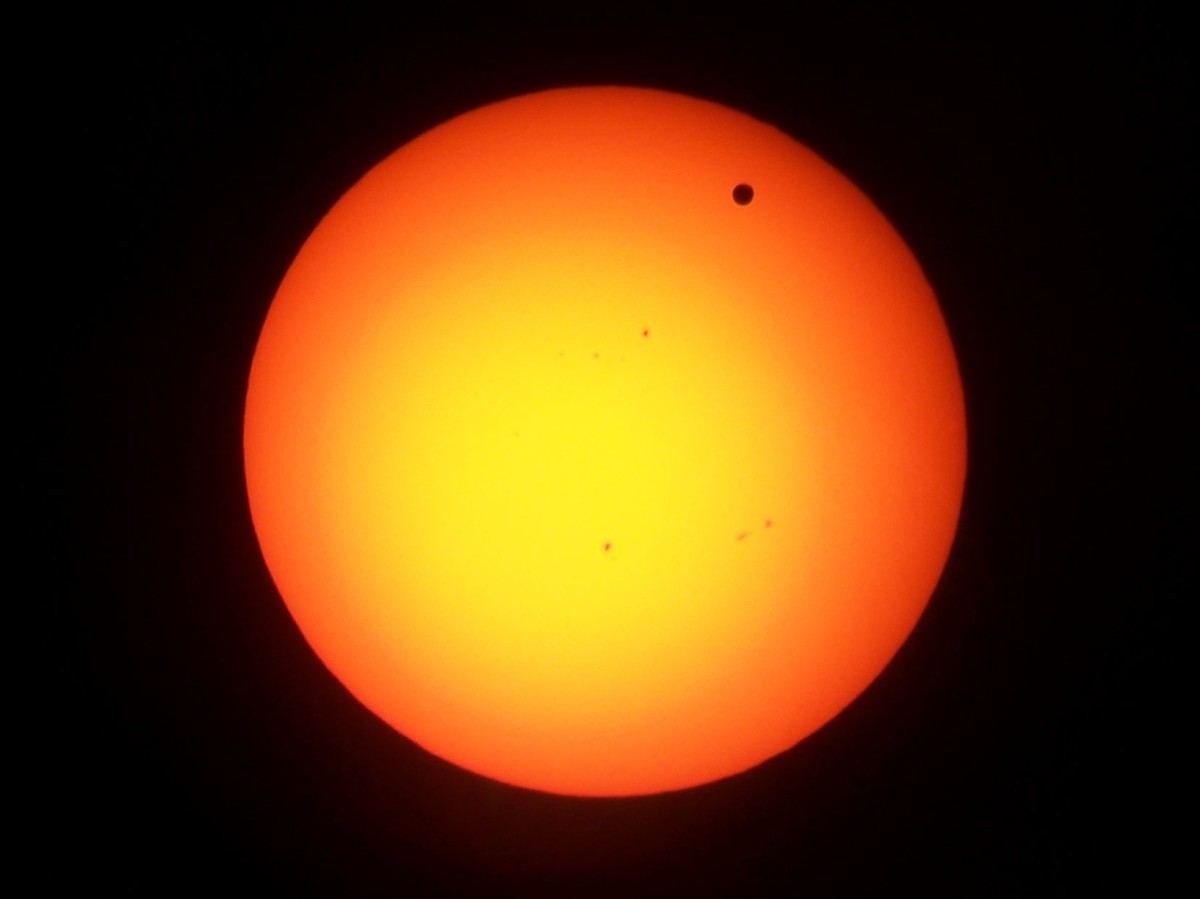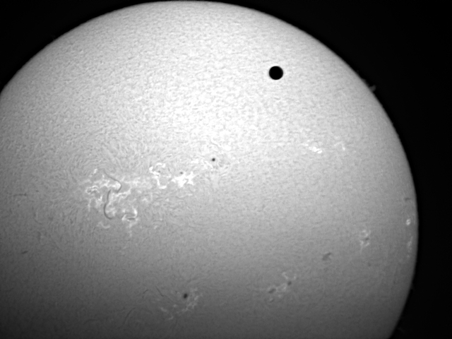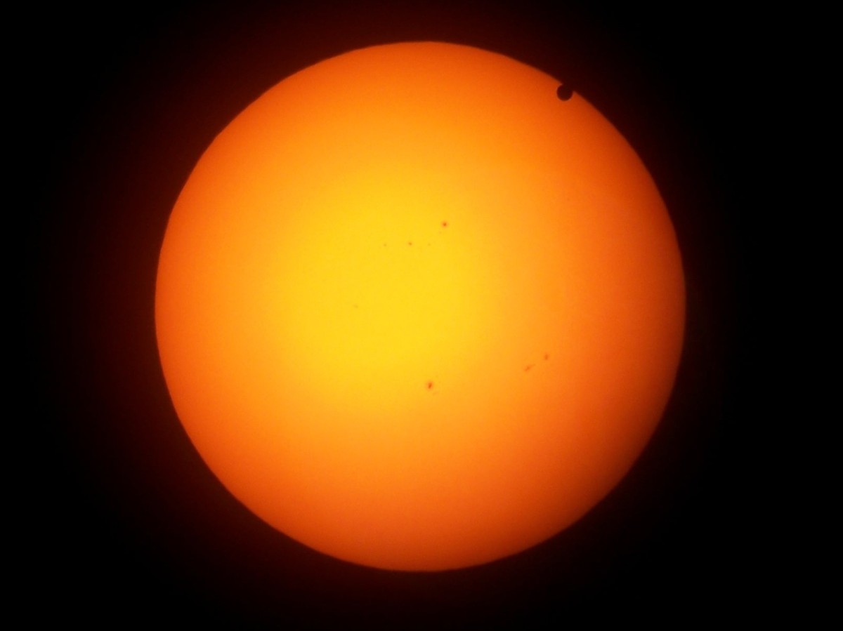 Am 6. Juni 2012 gab es am Morgenhimmel ein ganz besonderes Ereignis, welches erst in 105 Jahren wieder zu beobachten sein wird. Gemeint ist der Venustransit. Das gesamte Schauspiel begann um 00:09 MESZ und dauerte ca. 6 Stunden und 40 Minuten. Da in Dahlewitz der Sonnenaufgang erst ca. 05:00 Uhr MESZ war, konnten von dort aus nur die letzten 90 Minuten beobachtet werden. Fünfzehn Besucher haben trotz der frühen Stunde den Weg zur Sternwarte Dahlewitz gefunden und wurden dank des wolkenfreien Himmels mit einem besonderen Erlebnis belohnt. Deutlich war das kreisrunde Venusscheibchen zu sehen, wie es sich langsam über die Sonnenscheibe bewegte. Da sich die Sonne in einer Phase hoher Sonnenaktivität befindet, waren neben der Venus auch zahlreiche Sonnenflecken zu sehen.