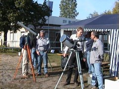 Am 23.September 2000 fand auf dem Sportplatz in Dahlewitz das diesjährige Dorffest statt. Unser Verein war u.a. mit Geräten zur Sonnenbeobachtung vertreten. Dank des herrlichen Wetters konnte die Sonne hervorragend beobachtet werden. Die Sonnenflecken errregten bei den Besuchern großes Interesse. In folgenden sind einige Bilder vom Dorffest zu sehen.