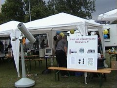 Auch 2002 fand auf dem Sportplatz in Dahlewitz ein Dorffest statt. Unser Verein war wieder vertreten. Leider erlaubte das Wetter nur wenige Blicke auf die Sonne. Trotzdem fand unser Stand reges Interesse. Es wurden Informationen zu den verschiedensten Fragen der Astronomie weitergegeben. Einige Bilder vom Dorffest sollen einen kleinen Eindruck vermitteln.