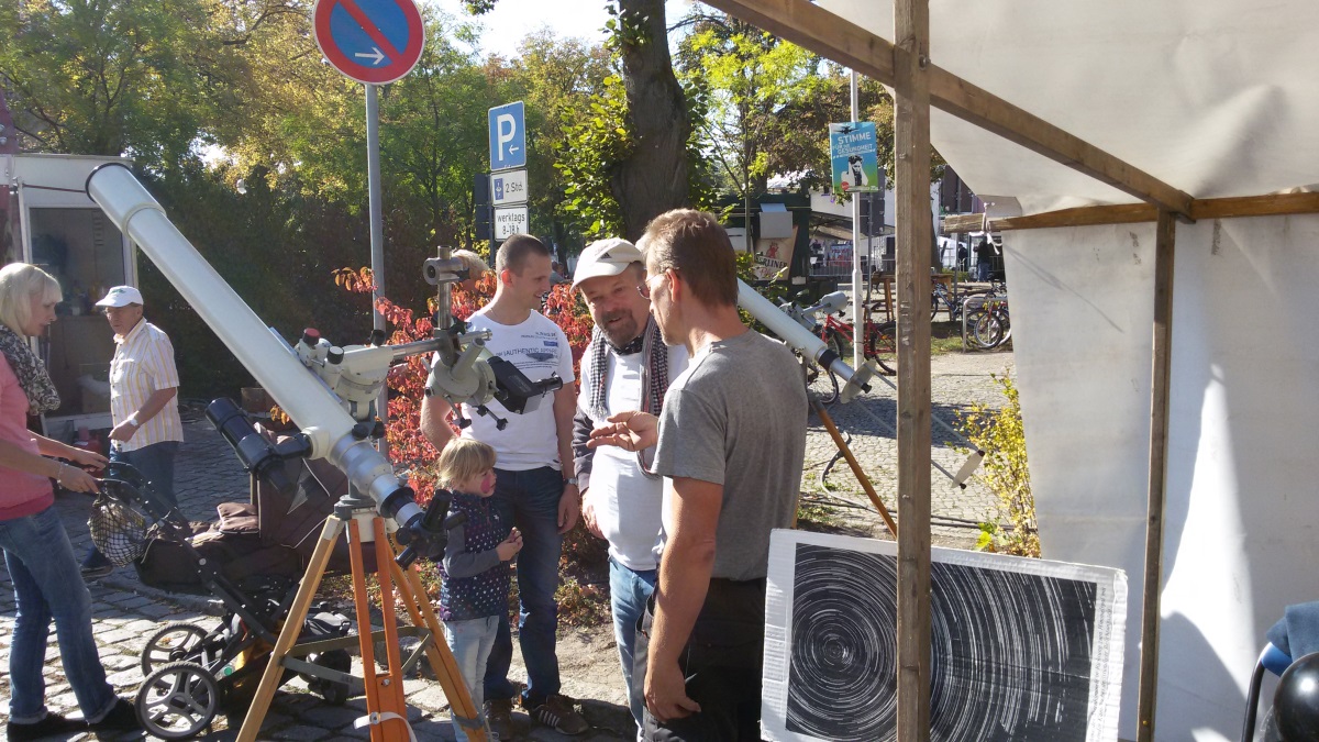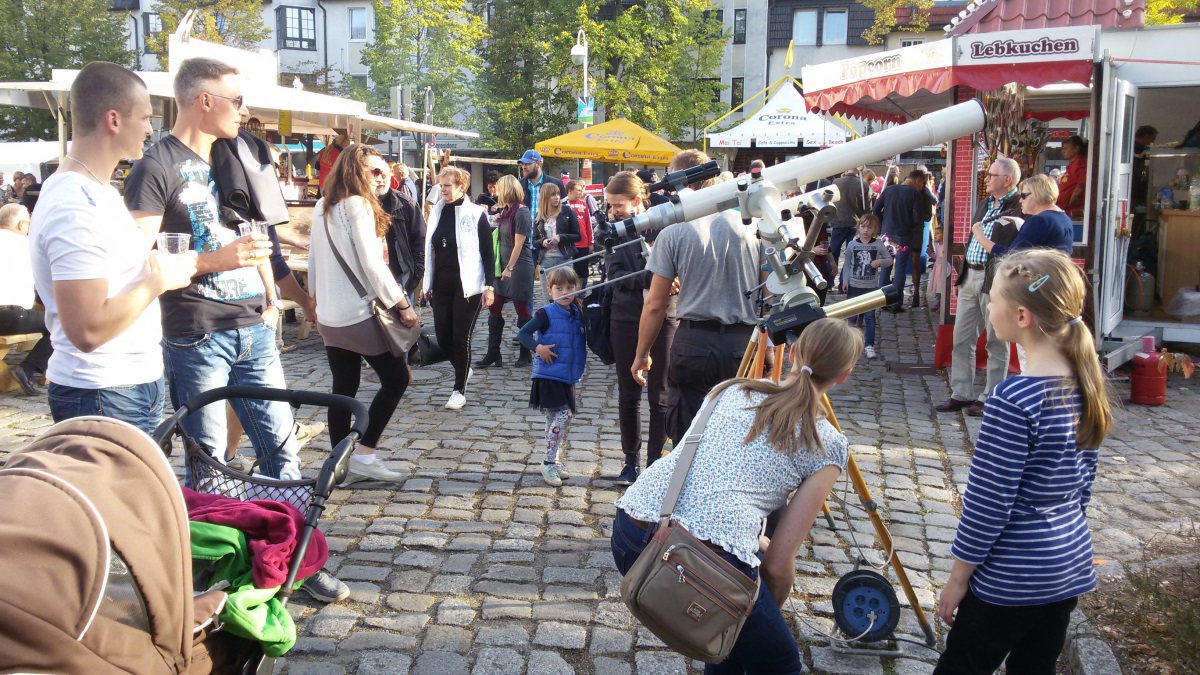 Am 03. Oktober 2015 fand anläßlich des 25. Jahrestages der Wiedervereinigung in Mahlow ein "Fest der Einheit" statt. Unser Verein war mit einem Stand vertreten. Das Wetter war ideal, um die Sonne zu beobachten. Viele Astronomiebegeisterte nutzten die Chance, um Sonnenflecken und Protuberanzen zu beobachten sowie sich über die Arbeit des Vereins zu erkundigen. Einige Bilder vom Stand des Vereins sollen einen kleinen Eindruck vermitteln.