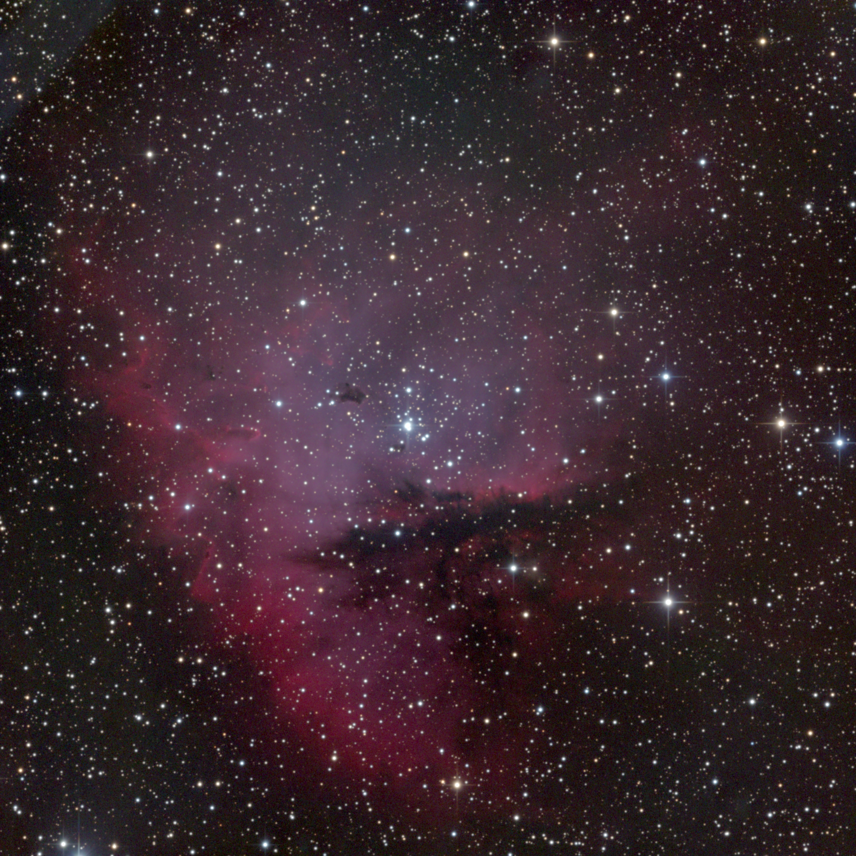 NGC281 (Pacmannebel) aufgenommen am 30.10.2021 am CDK 20 mit einer STX-16803 unter Verwendung von RGB-Farbfiltern (Rot-, GrĂ¼n-, Blau und Luminanzfilter insgesamt 46 Aufnahmen a 180 s) von Dirk Bartelt.