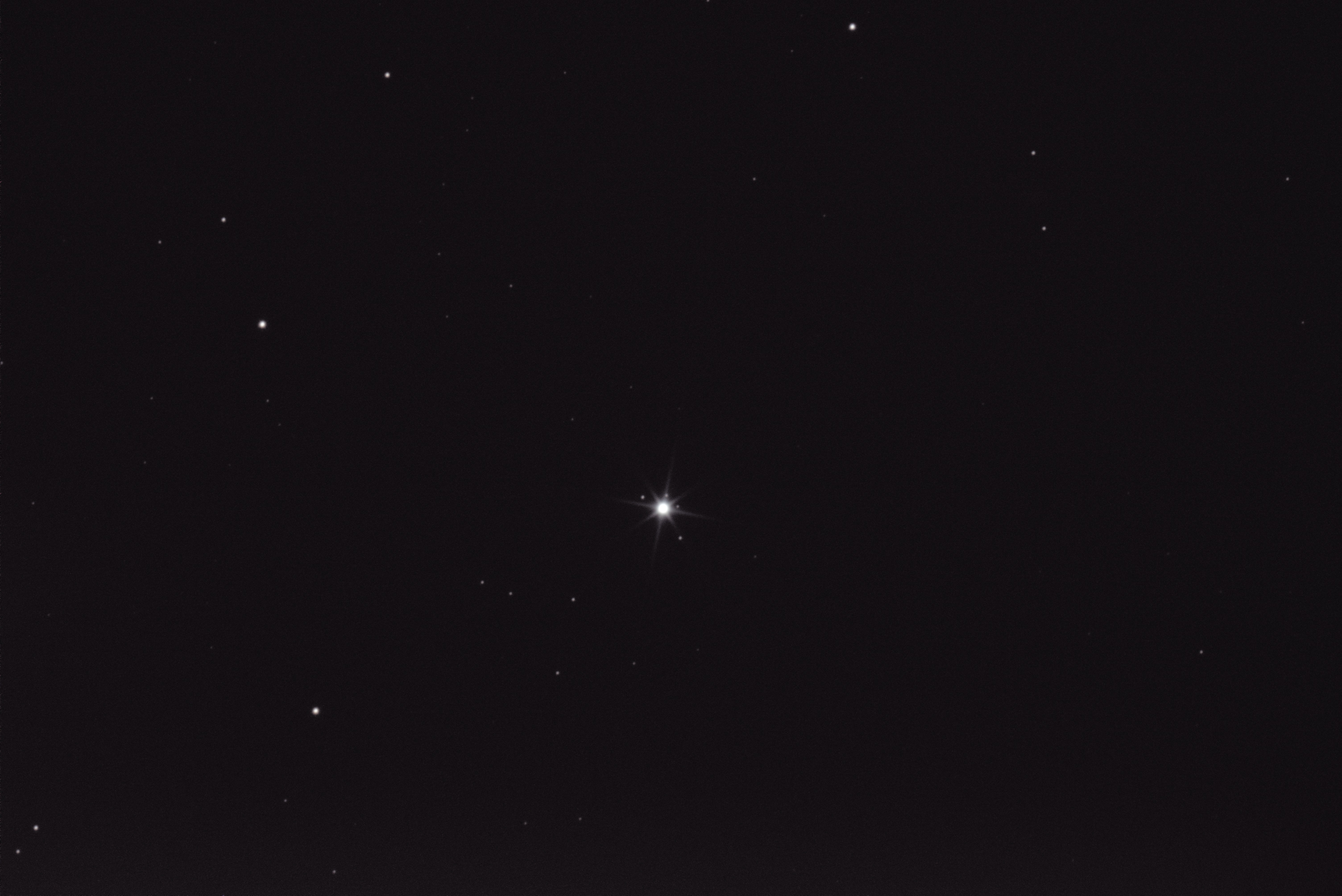 Uranus mit seinen Monden Titania, Ariel; Umbriel und Oberon (von links oben im Uhrzeigersinn) aufgenommen am 19.11.2020 von Hartmut Bock am CDK20 mit einer Nikon D5300. Die Aufnahme wurde aus 9 Einzelbildern (je 4s, ISO 1600) gestackt.
