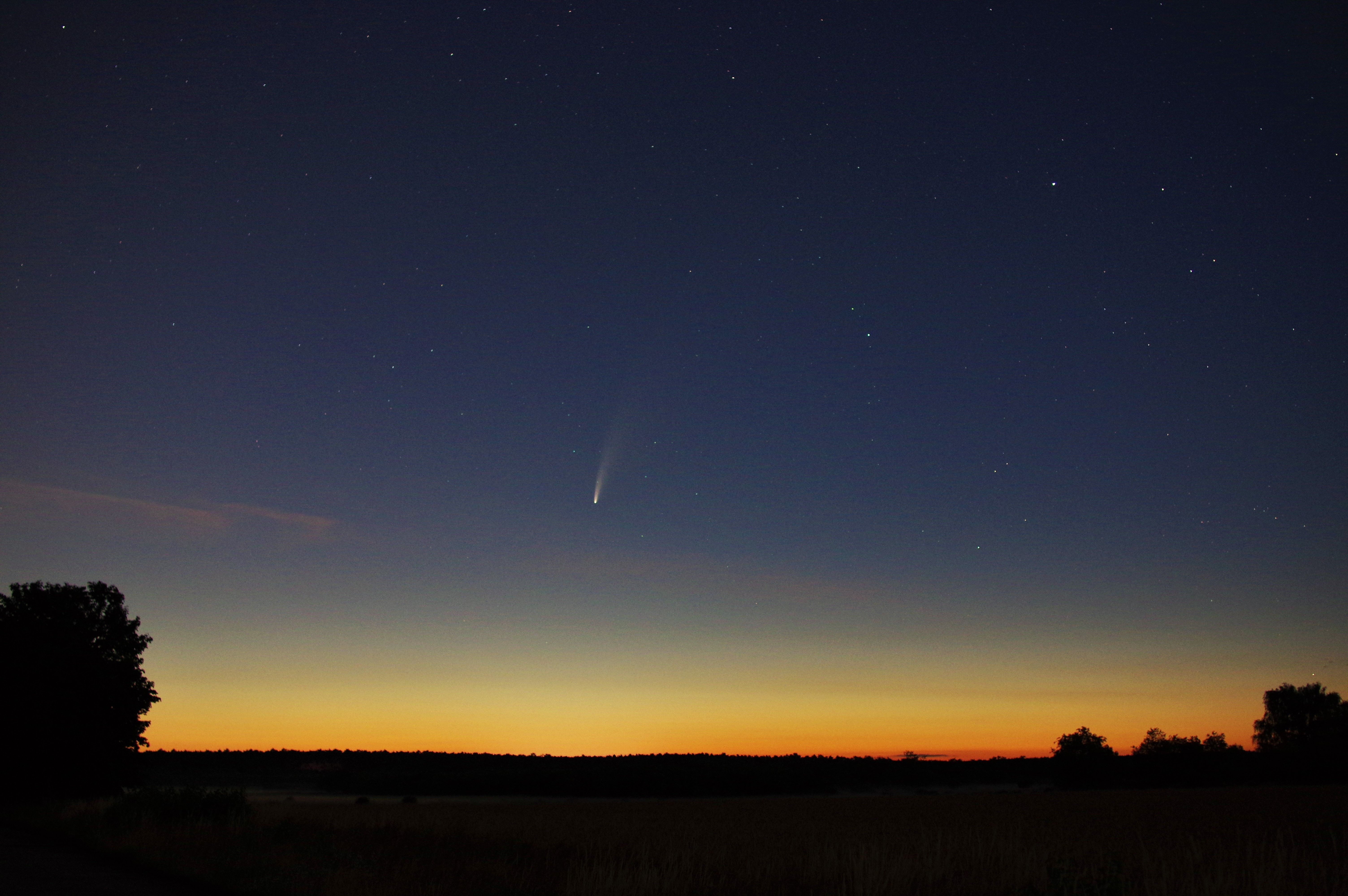 Komet Neowise über den Rieselfeldern in Ragow aufgenommen am 12.07.2020 von Peter Mein.