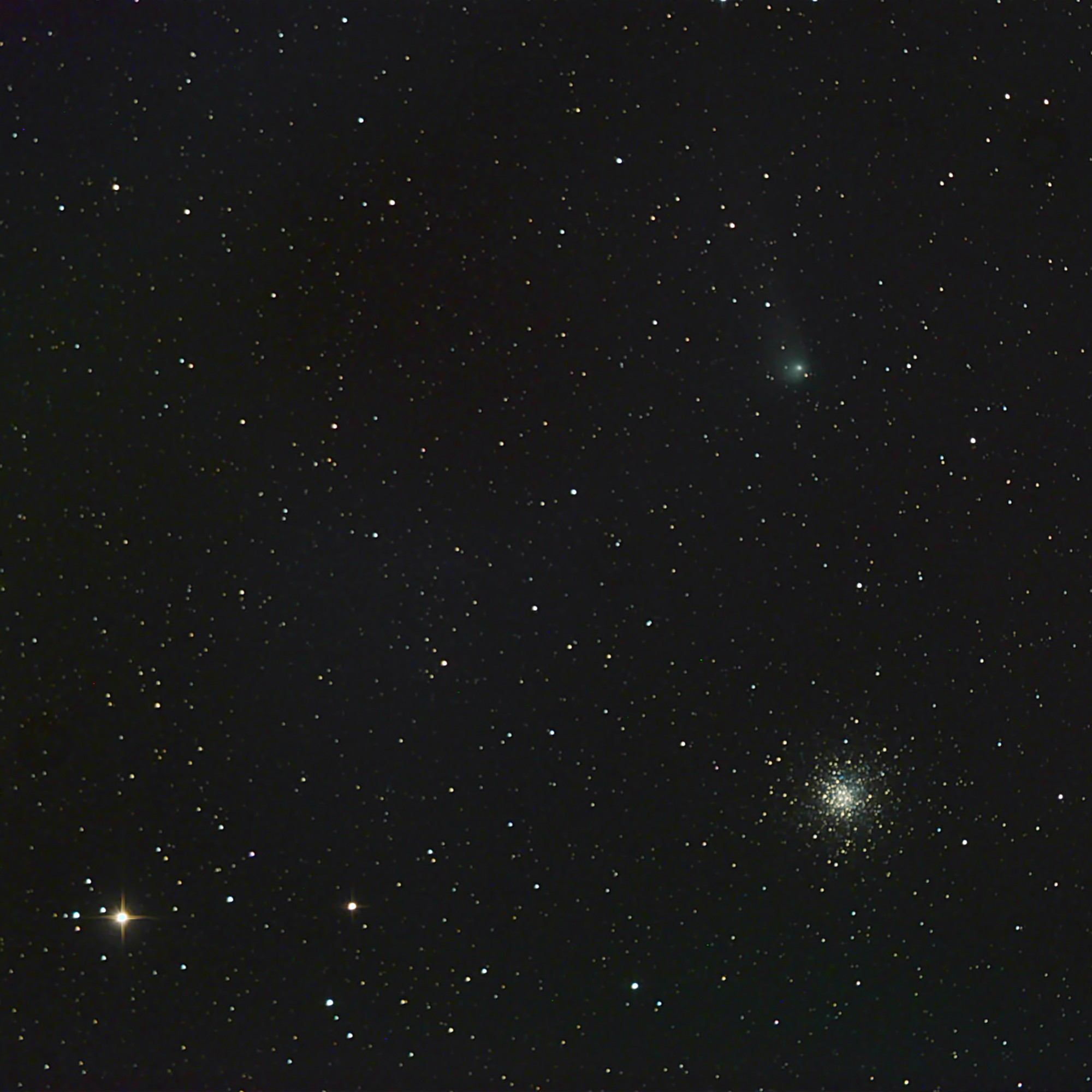 C_2017_K2 (Panstarrs) aufgenommen von Hartmut Bock am 15.07.2022 an einem 600mm-Newton (30 s Belichtung). Links 30 Oph , rechts M10, ca. 34' oberhalb C/2017 K2.
