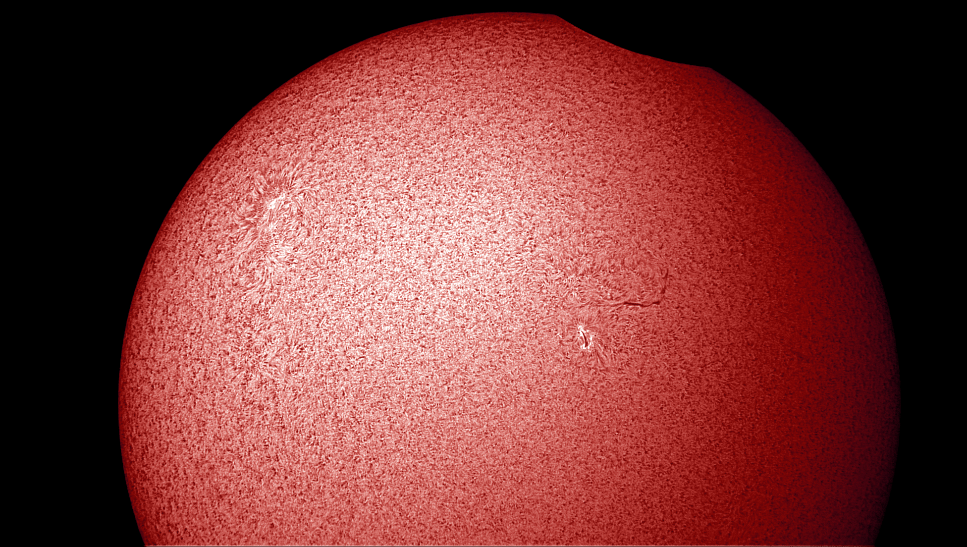 Diese Aufnahme wurde ebenfalls mit einem Hα-Filter um 12:26 Uhr MESZ gemacht.
