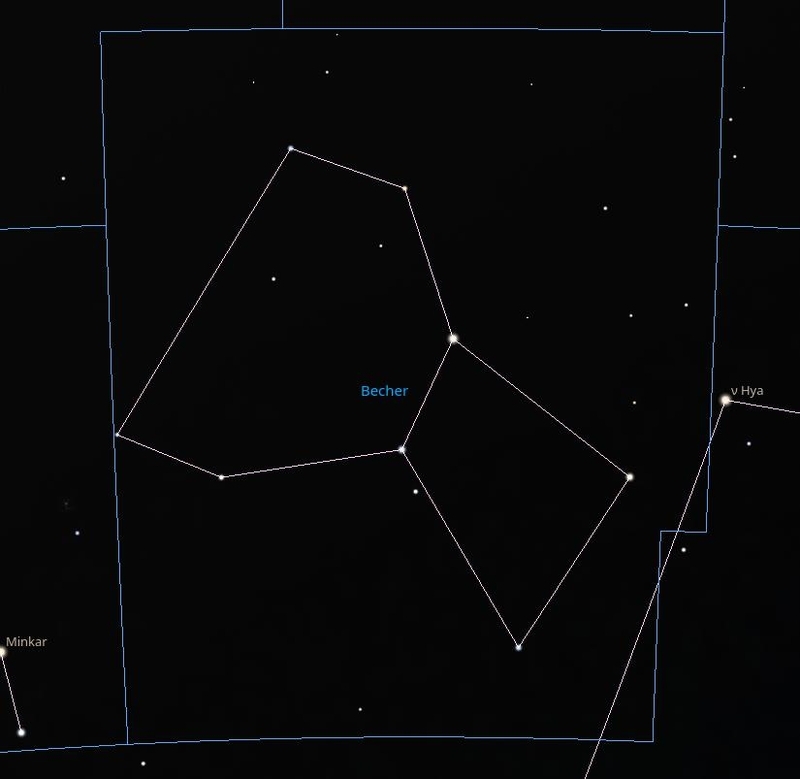 ![]() ![]() ![]() ![]() ![]() ![]() ( Crater, Crt )![]() Vor langer Zeit hatte Apollon, der Gott des Lichtes, einen großen Altar hergerichtet um seinem Vater, dem Göttervater Zeus zu opfern. Gerade noch rechtzeitig bemerkte Apollon, dass Wasser für das Opfer fehlte. Er schickte daraufhin seinen silberweißen Raben mit einem goldenen Becher zu einem Gebirge um von der dortigen Quelle Wasser zu bringen. Unterwegs kam der Rabe an einer Dattelpalme vorbei. Schon lange wollte er von den Früchten dieses Baumes kosten, jedoch waren sie zu diesem Zeitpunkt noch nicht reif. So wartete der Rabe einige Tage. Nachdem die Datteln reif waren, machte es keinen Sinn mehr, Wasser für Apollon zu holen. So nahm der Rabe zu einer List Zuflucht. Er fing eine Wasserschlange und kehrte mit dieser zu seinem Herrn zurück. Der Rabe erzählte Apollon, er habe kein Wasser schöpfen können, da die Wasserschlange die Quelle bewacht hatte und keinem erlaubte, dort Wasser zu holen. Apollon fiel auf diese Lüge nicht herein und verfluchte außer sich vor Zorn den Raben, der dessen Federn sich daraufhin auf ewig schwarz färbten. Noch heute erinnern die Sternbilder Rabe, Becher und Nördliche Wasserschlange an diesen Vorfall. zurück |