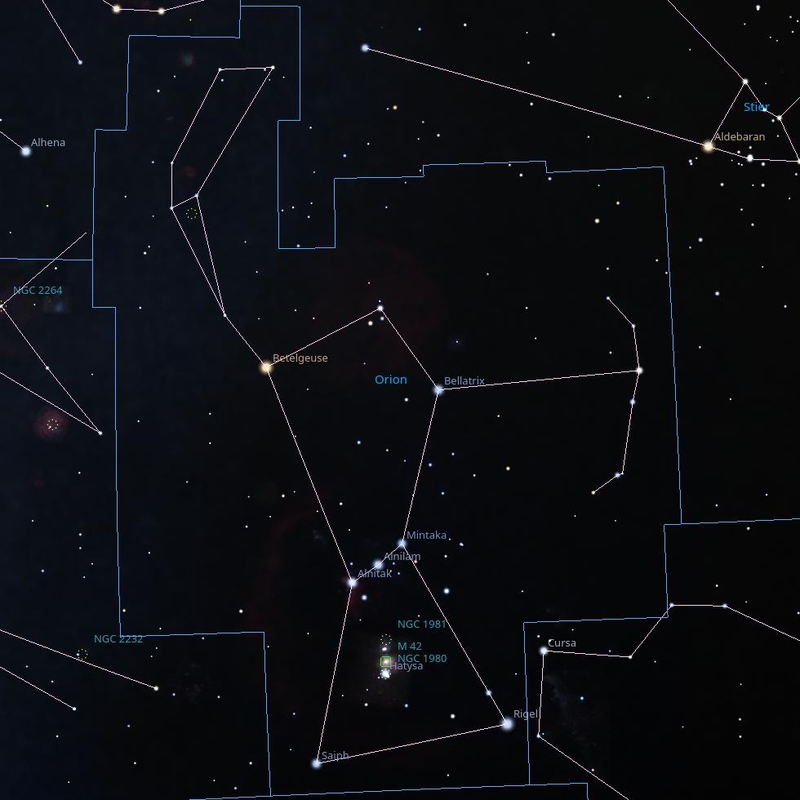 ![]() ![]() ![]() ![]() ![]() ( Orion, Ori )![]() Der wilde und gewaltige Jäger Orion aus Boitien hatte bei all seiner Wildheit ein gutes Herz. Als er eines Tages mit seinen beiden Hunden, einem großen und einem kleinen, auf der Jagd war, hetzte der große Hund einen Hasen. Dieser legte sich zu den Füßen des Orion nieder und fand bei diesem Schutz. Mit einer riesigen Streitkeule bewaffnet verfolgte Orion eines Tages die sieben Töchter des Atlas und der Pleione, die Plejaden. Ein wütender Stier stellte sich ihm in den Weg. Orion trat dem Stier furchtlos mit seiner Keule entgegen. Auf einem seiner Streifzüge fand Orion eine Höhle, in der ein See verborgen war. In diesem erfrischte sich die Göttin Artemis, wenn sie in den Bergen jagte. Kein Sterblicher durfte sich diesem Ort nähren und die Göttin erblicken. In dem Augenblick, als die Nymphen die Göttin entkleidet hatten, tauchte Orion am Eingang der Höhle auf. Wütend und zornig verwandelte Artemis Orion in einen Hirsch. Orion, dem sein Verstand geblieben war, floh als furchtsamer Hirsch aus dem Wald. Seine Hunde witterten und verfolgten ihn. Als sie ihn erreichten, konnte er sich den Hunden nicht als ihr Herr zu erkennen geben und wurde von ihnen in Stücke gerissen. Die Götter versetzten Orion und seine Hunde daraufhin als Sternbilder an den Himmel. M42; NGC1976; Orionnebel; Emissionsnebel; scheinbare Helligkeit: 3,7m; Entfernung: 1350 Lj; M43; NGC1982; De Mairans Nebel; Emissionsnebel; scheinbare Helligkeit: 9m; Entfernung: 1300 Lj; M78; NGC2068; Reflexionsnebel; scheinbare Helligkeit: 8,3m; Entfernung: 1600 Lj; IC434; Pferdekopfnebel; Emissionsnebel; Entfernung: 1500 Lj; zurück |