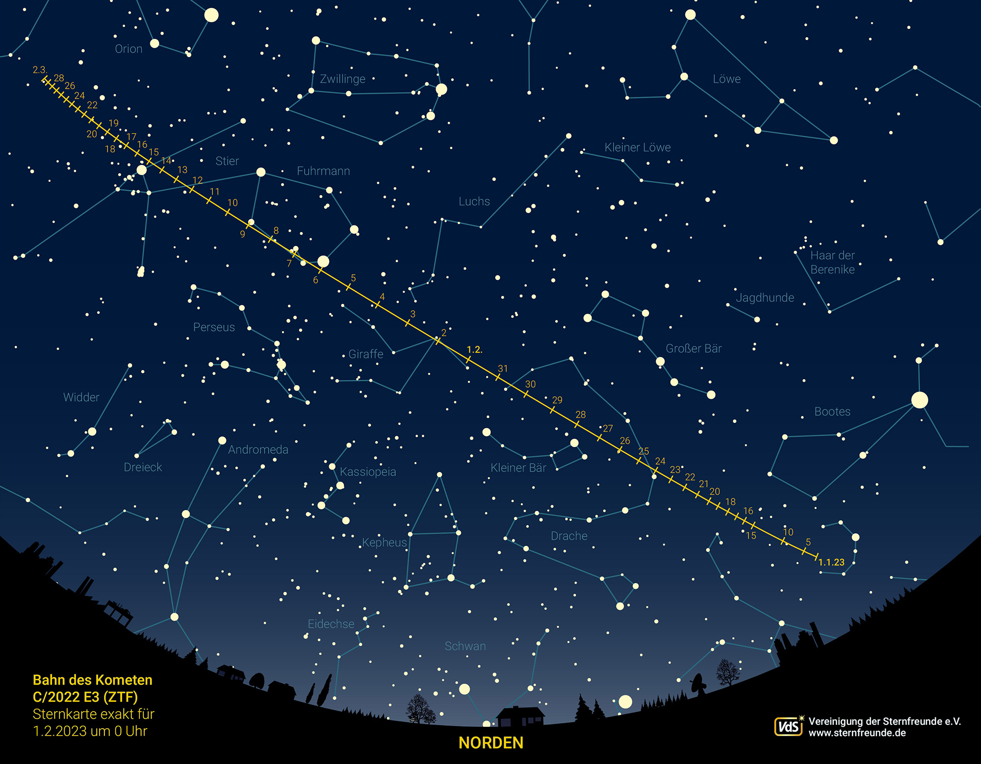 Die folgende Abbildung vom VdS zeigt den Verlauf von C/2022 E3: